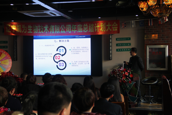 2018年1月8日,遼寧凱為生物技術有限公司2017年年度總結(jié)、表彰及2018年年度計劃大會在錦州西部音樂烤場一樓宴會大廳隆重召開。 公司全體員工參加了此次會議。