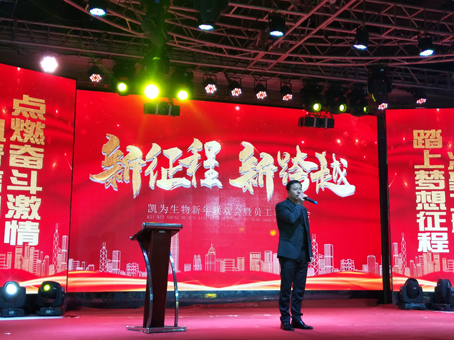豪情歡歌辭舊歲,喜氣開篇迎新年!2020年1月8日下午,遼寧凱為生物技術有限公司“新征程 新跨越”新年聯(lián)歡會暨員工表彰大會在名仕國際俱樂部三樓宴會廳隆重舉行,公司總裁王鐵良攜公司高管及全體員工100余人歡聚一堂,共度聯(lián)歡!