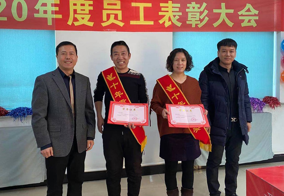 閆希東、薛曉娟獲得2020年度十年貢獻(xiàn)獎(jiǎng),十年的堅(jiān)守不渝,十年的默默耕作,他們把最美好的青春韶華賦予了我們?yōu)橹餐瑠^斗的事業(yè),十年如一日他們時(shí)刻心系企業(yè)的憂患,與企業(yè)同風(fēng)雨共命運(yùn),正是因?yàn)樗麄兊母冻鰟P為的今天才如此絢麗。公司總經(jīng)理王鐵良與銷售部經(jīng)理趙福寬為獲獎(jiǎng)?wù)哳C發(fā)榮譽(yù)證書。